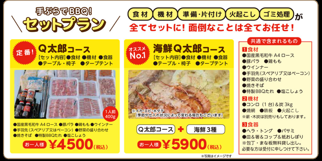 | バーベキュー場(BBQ太郎) | 手ぶらで楽しめるバーベキュープランを提供 | 10:00~16:00(土日祝日) |
